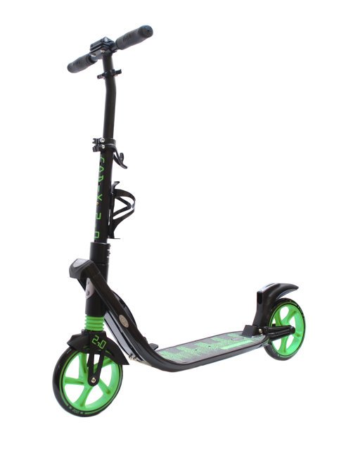 Самокат cod-x 2.0, взрослый, алюминий, складной, колеса 200 мм, до 100 кг. цвет: черно-зеленый, материал: алюминиевый, новый оригинальный дизайн, передний+ задний амортизатор, складной, регулируемая высота руля, резиновые ручки фиксируемые 2-мя эксцентриками, флягодержатель, нагрузка до 100кг, ножной тормоз, колеса 200мм с герметичными подшипниками ABEC-9, ремень для переноски, вес 6,2кг,