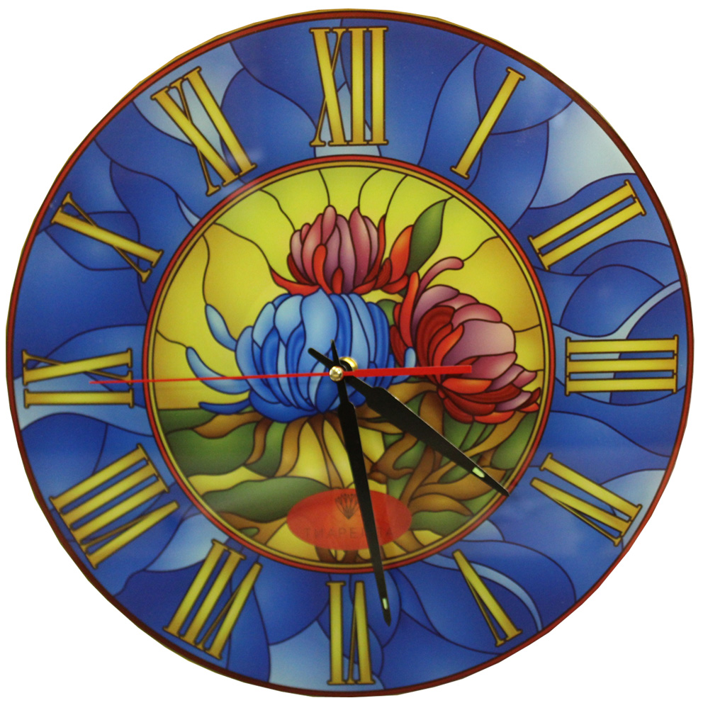 Настенные часы Tiarella Витраж-5 оснащены надежным кварцевым механизмом плавного хода.Лазерная резка стекла высокого качества, насыщенные краски. Стиль прованс. Дизайнерские витражные часы.