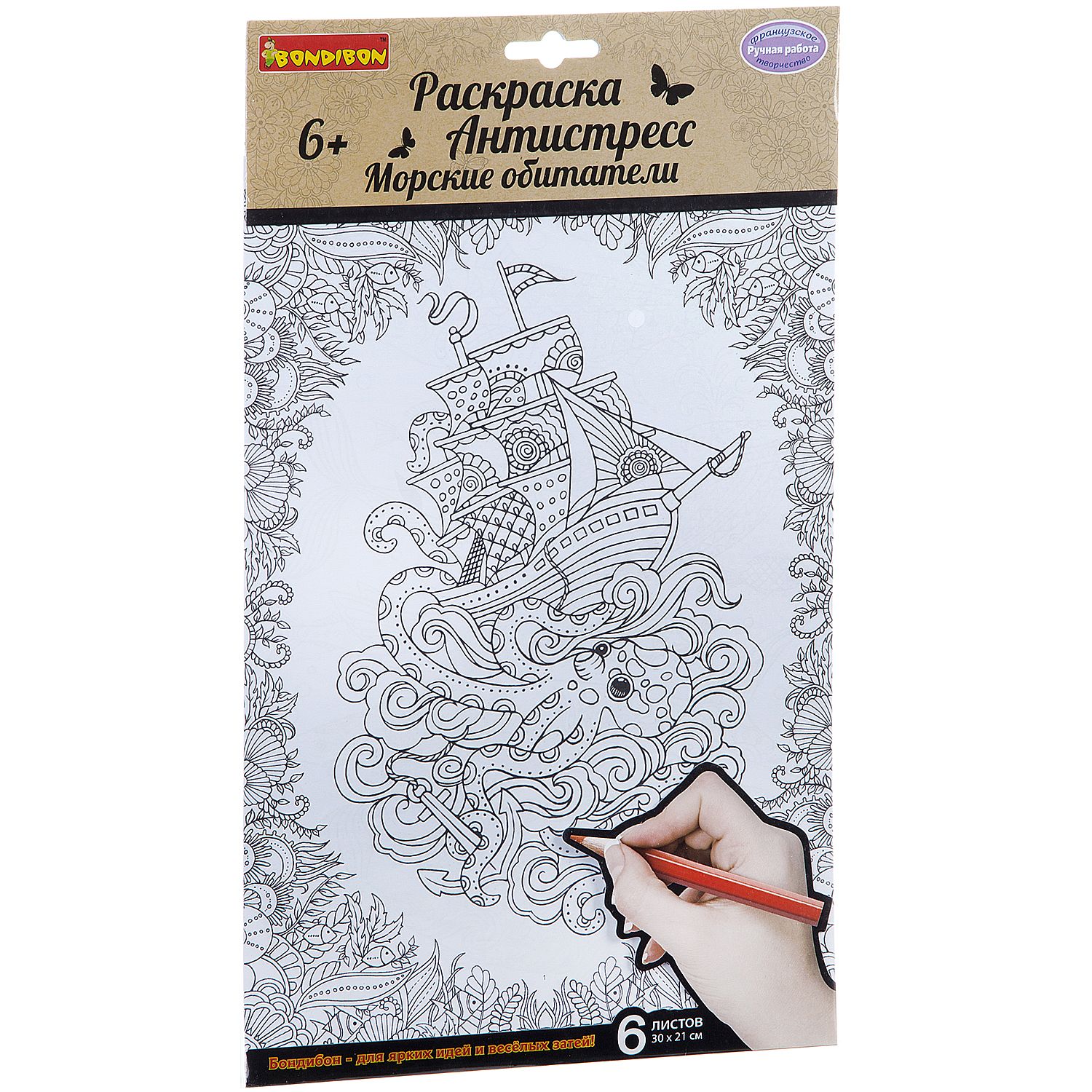 "морские обитатели. 6 листов" - набор раскрасок антистресс Bondi
