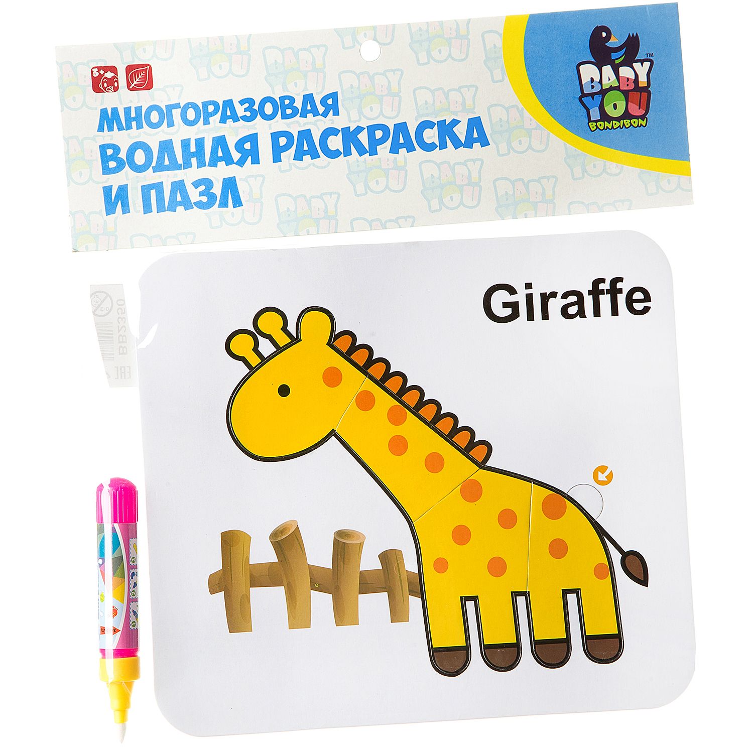 "жираф" - многоразовая водная раскраска-пазл Bondibon
