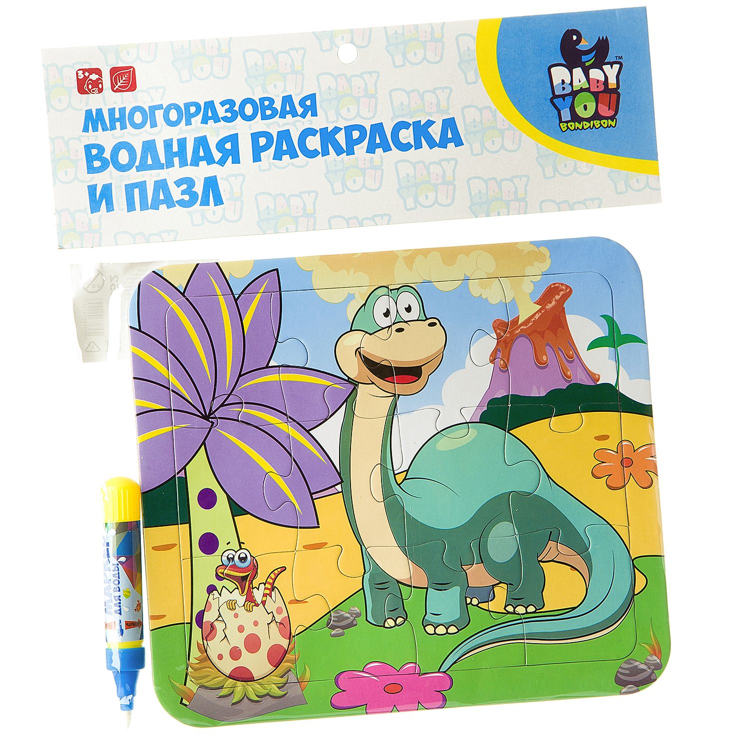 "диплодок" - многоразовая водная раскраска-пазл Bondibon