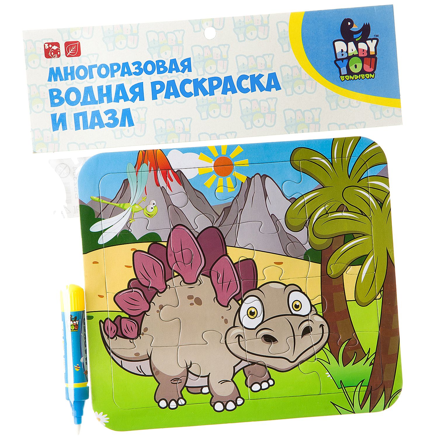 "стегозавр" - многоразовая водная раскраска-пазл Bondibon