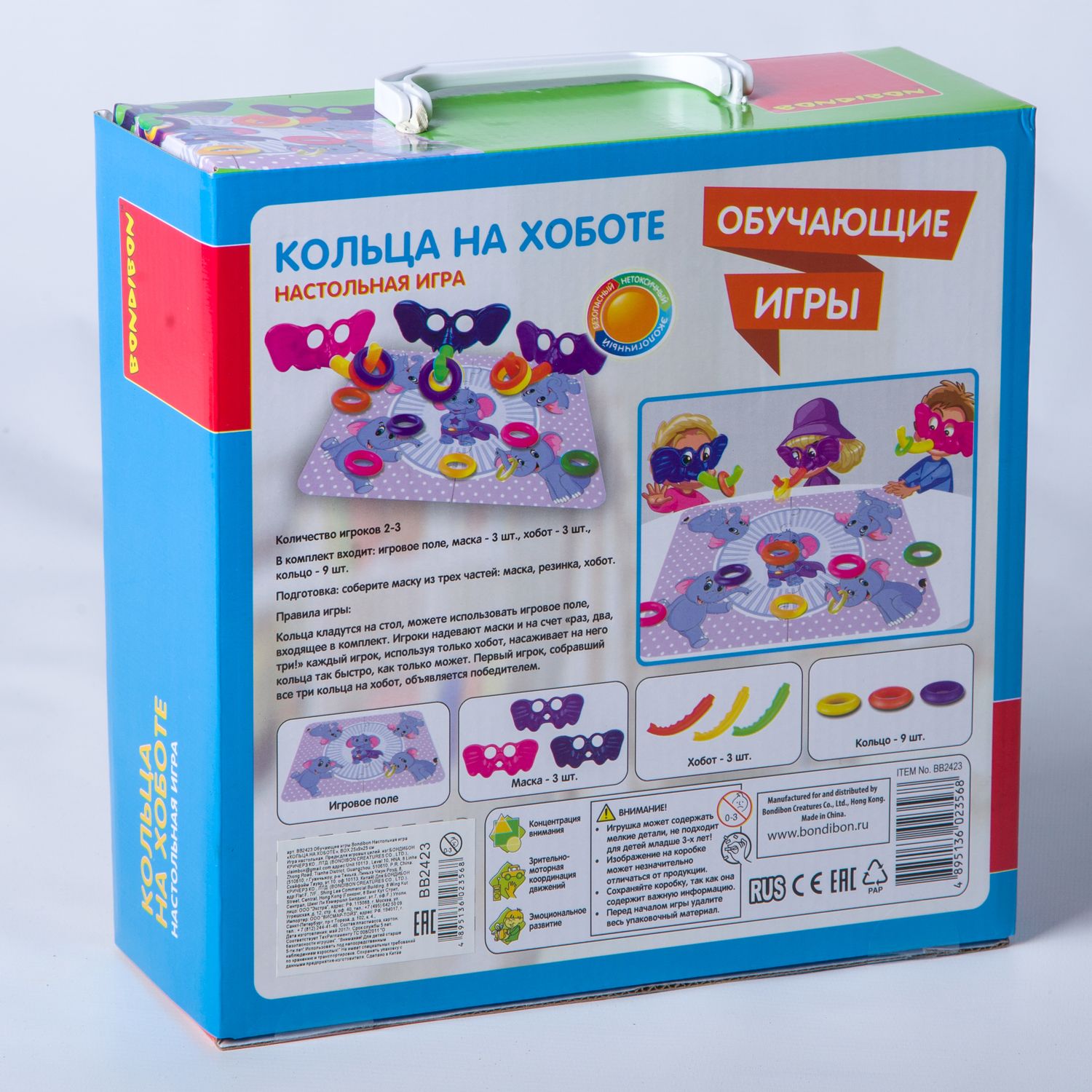 "кольца на хоботе" - настольная обучающая игра Bondibon
