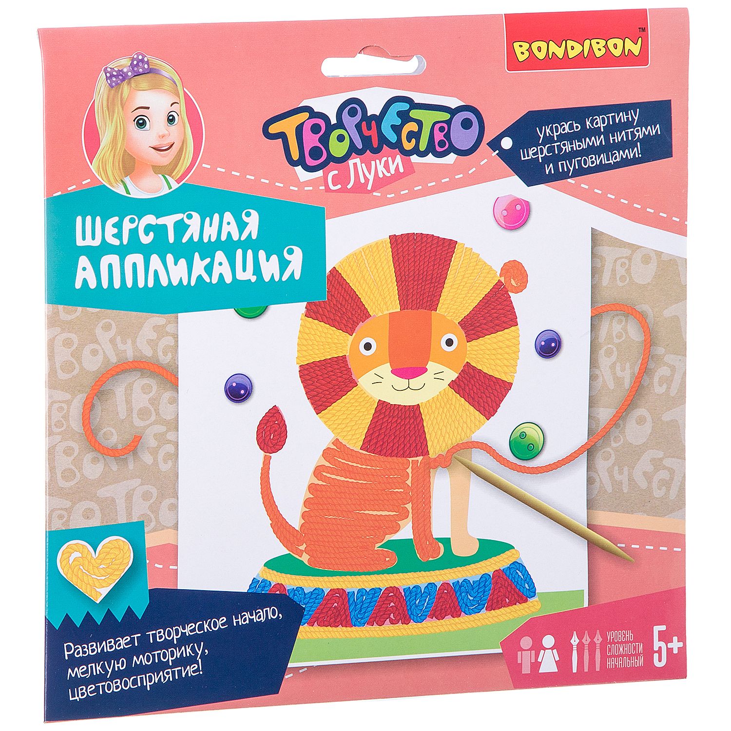 "шерстяная аппликация. львенок-циркач" - набор для творчества  B