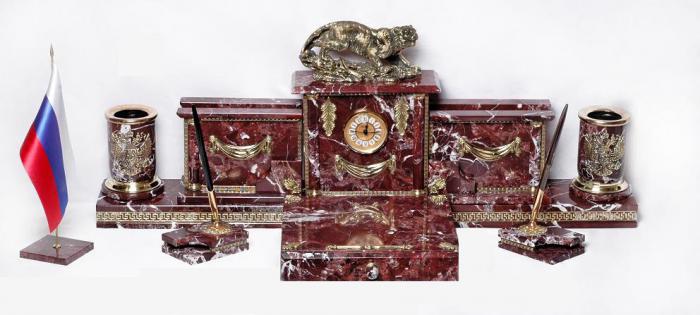Настольный набор из яшмы с тигром