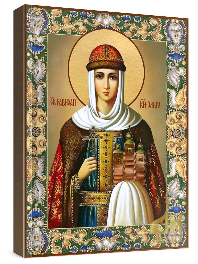 Икона княгиня ольга. Святая равноапостольная княгиня Ольга (920-969) - русская княжна, правившая Древней Русью примерно с 945 по 960 год. Княгиня Ольга почитается Русской православной церковью как первое правившее Русью лицо, принявшее христианское вероисповедание. Хотя княгиня и не смогла обратить в христианство весь русский народ, она подготовила всё для последующего крещения Руси её внуком - князем Владимиром Святославовичем. Ещё Ольга считается небесной покровительницей вдов и новообращённых христиан. Память по Святой равноапостольной княгине Ольге празднуется ежегодно 11 июля по церковному календарному стилю (24 июля по современному календарю).О