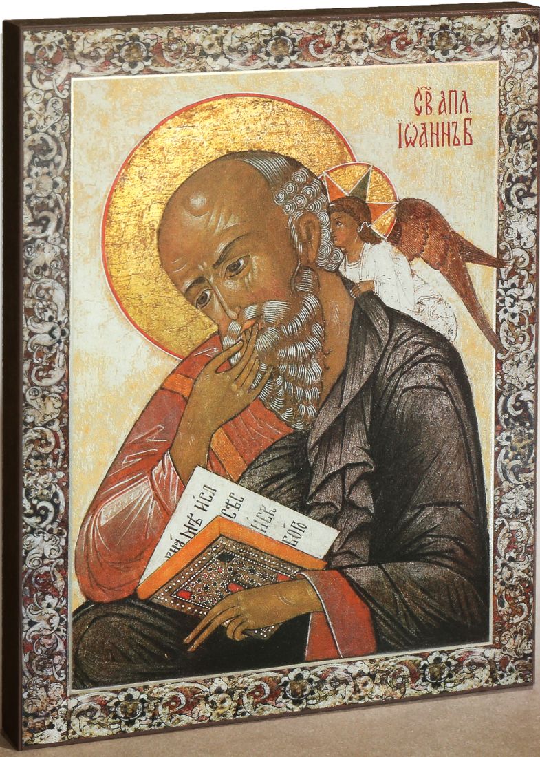 Икона иоанн богослов (апостол иоанн). Иоанн Богослов (Апостол Иоанн) - это один из двенадцати ближайших учеников Христа, называемых апостолами. Иоанн Богослов является единственным апостолом, умершим естественной смертью. В православной иконографии Иоанн Богослов традиционно изображается в виде старца, носящего красное одеяние или красный платок. В руках апостол держит чернильницу, перо, книгу (Евангелие) или свиток. Часто (но вовсе необязательно) Иоанн изображается в сопровождении ангела или орла. Иоанн Богослов почитается как чудотворец и евангелист - за свою долгую жизнь он воскресил множество усопших, но наиболее значимым трудом Иоанна Богослова считается написание Евангелия от Иоанна. Существует предание, гласящее, что каждое 8 мая из могилы апостола в городе Сельчук (ныне в составе Турции) проступает прах, обладающий целебными свойствами. Память по Иоанну Богослову совершается ежегодно 8 мая по юлианскому календарю (21 мая по современному календарю).