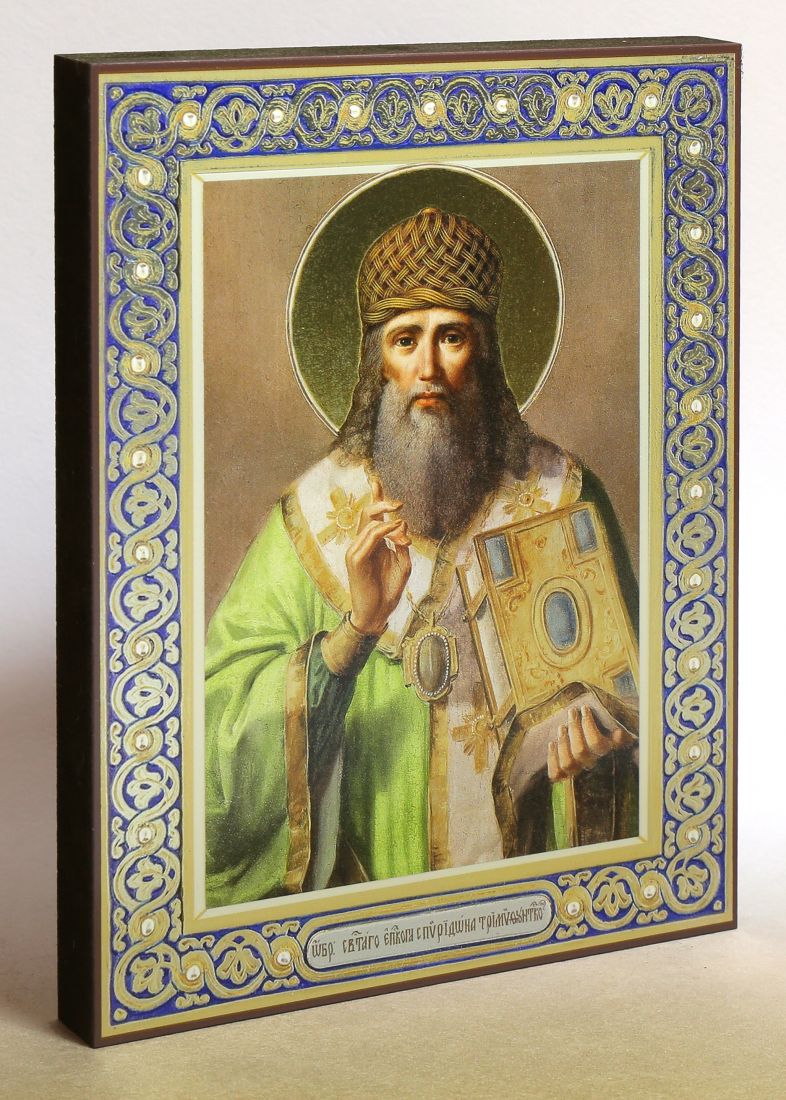 Икона спиридон тримифунтский. Сергий Радонежский, в миру Варфоломей Кириллович (1314/1322-1392) - это почитаемый русский иеромонах, считающийся основателем множества святых православных обителей и монастырей, а также основоположником православного старчества. Святой Сергий Радонежский является небесным покровителем разных учащихся - многие православные верующие молятся Сергию Радонежскому перед сдачей важных экзаменов. Сергий Радонежский, был канонизирован в лике преподобных в 15-м веке, однако он и до того уже почитался всеми русскими православными как один из наиболее важных святых, посвятивших себя служению русской земле и Русской православной церкви. Память Святого Преподобного Сергия Радонежского празднуется дважды в год. В день преставления (земной смерти) святого - 25 сентября по юлианскому календарю (8 октября по современному) и в день обретения мощей святого - 5 июля (18 июля по современному).