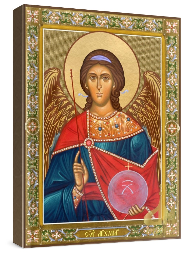 Икона архангел михаил с копьём и зерцалом. Святой архангел Михаил - это главный христианский архангел в чине архистратига, что обозначает его командиром всех остальных ангелов, архангелов и прочих Небесных сил. Архистратиг Михаил известен множеством деяний, чудес и явлений, совершённых в разные времена жизни человечества. Кроме всего вышеуказанного, Архангел Михаил иногда упоминается Страж рая - единственный ангельский воин, с оружием в руках охраняющий врата в Небесное царство. Память Архистратига Михаила отмечается каждый год 8 ноября по юлианскому календарю (21 ноября по современному календарю).