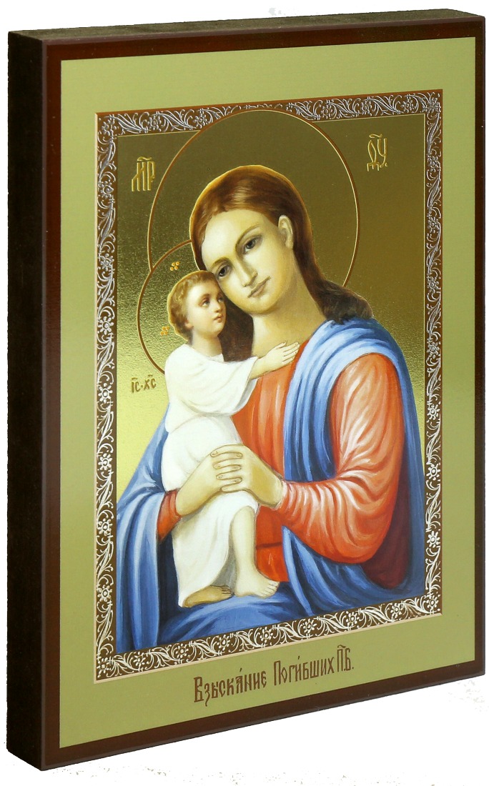 Икона взыскание погибших. Взыскание погибших - это почитаемый иконографический образ Божией Матери. Какой-либо конкретной истории появления образа до наших дней не дошло, известно лишь то, что название Взыскание погибших возникло из апокрифического (не канонического) описания жития Феофила Аданского (умер около 538 года), продавшего душу дьяволу, но в итоге вымолившего у Богородицы прощение. В своих молитвах, денно и нощно читаемых на данный образ Пресвятой Богородицы, Феофил именовал его не иначе как Взыскание погибших - это название и дошло до наших дней. Считается, что этот иконографический образ Богоматери получил известность и высочайшую степень почтения в православной Руси в 18-м веке.