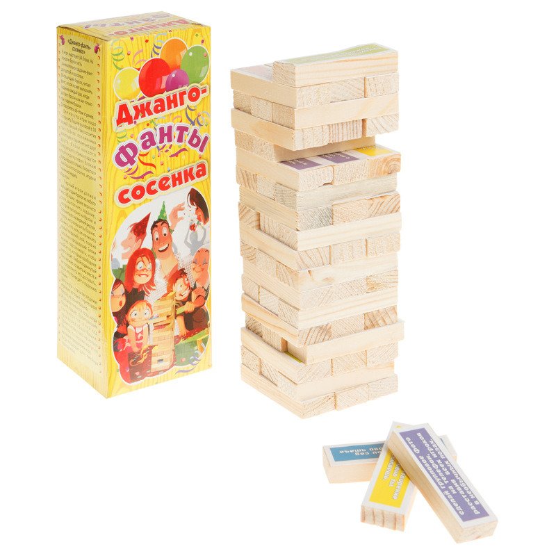 Дженга фанты сосенка большая. Что в коробке 54 бруска Инструкция Увлекательная настольная игра, ориентированная на спокойных игроков, обладающих хорошей координацией движений и умеющих принимать правильные решения согласно ситуации. Принять в ней участие могут как маленькие дети, так и взрослые – все будут довольны. Она несет в себе не только развлекательную цель, но и развивающую: Координация движений Реакция Продумывание тактики Все это обязательно пригодится в самой игре, но кроме того – позволит дальше развиваться. Отлично подходит как для шумных семейных посиделок, дружеских вечеринок, корпоративов с коллегами. Прочность – не важна Игра начинается с основной башни, которая сделана прочной и устойчивой – 18 этажей по 3 бруска в каждом. Но это только до того момента, пока в дело не вступают участники – они вытаскивают по одному бруску из нижних этажей и переносят их поверх башни, выстраивая новые. Делать это совершенно не просто (ну разве что – в начале игры), ведь каждый вытаскиваемый брусок может привести к полному разрушению всей конструкции. Игроки должны быть как можно более аккуратными, причем как при вытаскивании, так и при установке. Победителей в Дженго Фанты Сосенка большая может быть несколько, а вот проигравший будет лишь один – тот, кто сломает башню. Качество заслуживает похвалы Работники компании Задира постарались, чтобы их детище прослужило как можно дольше, в связи с чем, материалом изготовления была выбрана сосна. Это гарантирует прочность, неприхотливость в эксплуатации, устойчивость к внешним воздействиям. Вдобавок – приятно ведь держать в руках деревянный брусок, а не хлипкий пластик. Само ощущения прочности в руке – уже многое значит.
