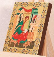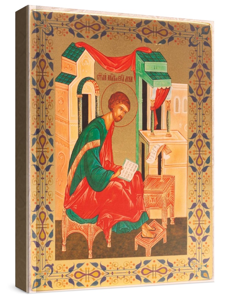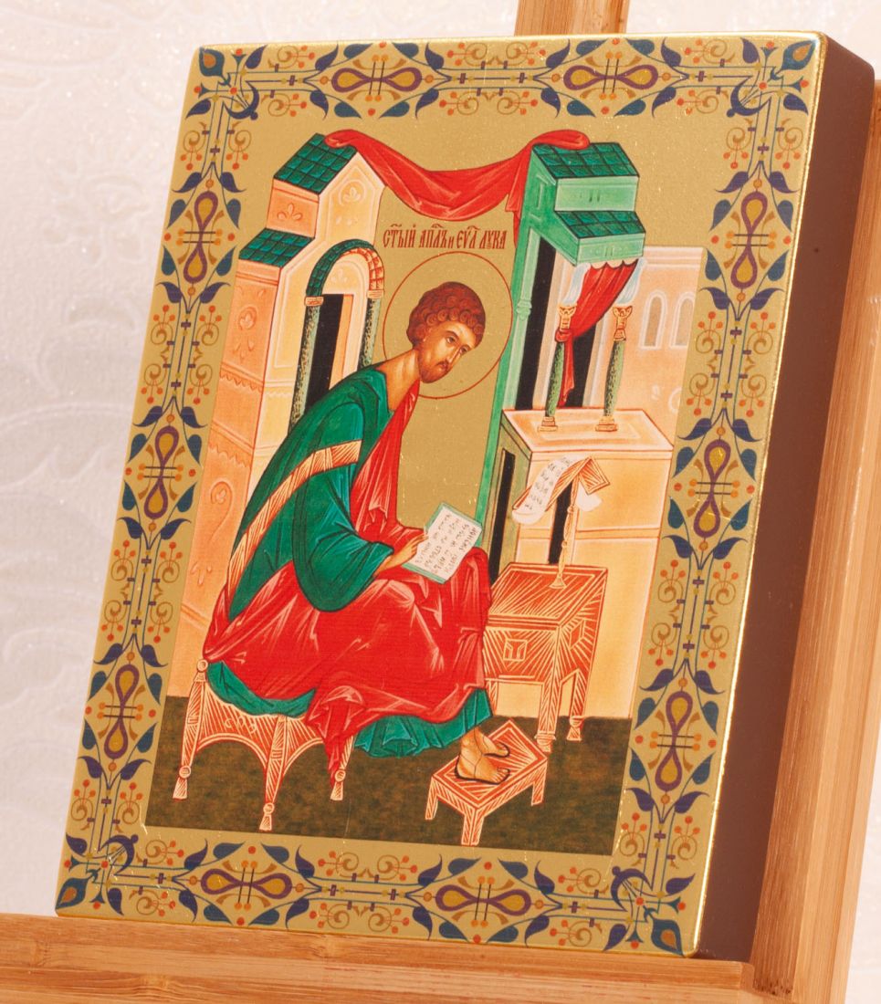 Икона апостол лука. На предварительно обработанную, специально подготовленную липовую доску наносится золочение. Далее методом прямой печати на золотую поталь (высокотехнологичный аналог сусального золота) переносится святой образ. Затем икона покрывается несколькими слоями защитного UV-лака, что защищает изображение от воздействий окружающей среды и выцветания красок (Гарантия - 50 лет!) На обратной стороне иконы имеется крепление и сертификат на изделие. Высокотехнологичное современное оборудование, используемое при производстве и применение итальянских красок премиум-класса делает качество иконы практически неотличимым от рукописного аналога. Преимуществом данной серии является так же и то, что никакие погрешности в изображении образа технологически невозможны - Вы получаете именно такую икону, которую видите на фотографии! Дополнительные характеристики икон в зависимости от размера (см): 13х16 - без ковчега, толщина доски 2 см. 17х21, 24х30 - с ковчегом (по желанию без), толщина доски 2 см. 30х40, 40х60, 60х80, 80х120 - с ковчегом (по желанию без), толщина доски 4 см, шпонки типа ласточкин хвост. Вожможно изготовление иконы по индивидуальному размеру и по индивидуальному изображению.