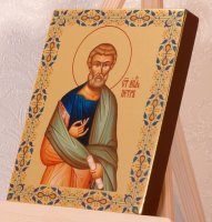 Икона апостол петр. На предварительно обработанную, специально подготовленную липовую доску наносится золочение. Далее методом прямой печати на золотую поталь (высокотехнологичный аналог сусального золота) переносится святой образ. Затем икона покрывается несколькими слоями защитного UV-лака, что защищает изображение от воздействий окружающей среды и выцветания красок (Гарантия - 50 лет!) На обратной стороне иконы имеется крепление и сертификат на изделие. Высокотехнологичное современное оборудование, используемое при производстве и применение итальянских красок премиум-класса делает качество иконы практически неотличимым от рукописного аналога. Преимуществом данной серии является так же и то, что никакие погрешности в изображении образа технологически невозможны - Вы получаете именно такую икону, которую видите на фотографии! Дополнительные характеристики икон в зависимости от размера (см): 13х16 - без ковчега, толщина доски 2 см. 17х21, 24х30 - с ковчегом (по желанию без), толщина доски 2 см. 30х40, 40х60, 60х80, 80х120 - с ковчегом (по желанию без), толщина доски 4 см, шпонки типа ласточкин хвост. Вожможно изготовление иконы по индивидуальному размеру и по индивидуальному изображению.