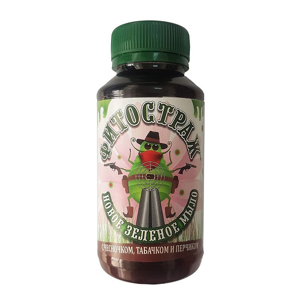 Зеленое мыло фитостраж 200мл. Зеленое мыло Фитостраж – это поверхностно-активное вещество, которое включает в свой состав различные экстракты растительного происхождения: чеснок, перец, табак. Средство используется для защиты растений от вредителей, таких как: тля, пильщик, щитовка, трис, клоп и других. • Размер: 11,5х5 см • Вес нетто: 0,2 кг • Объем: 0,2 л